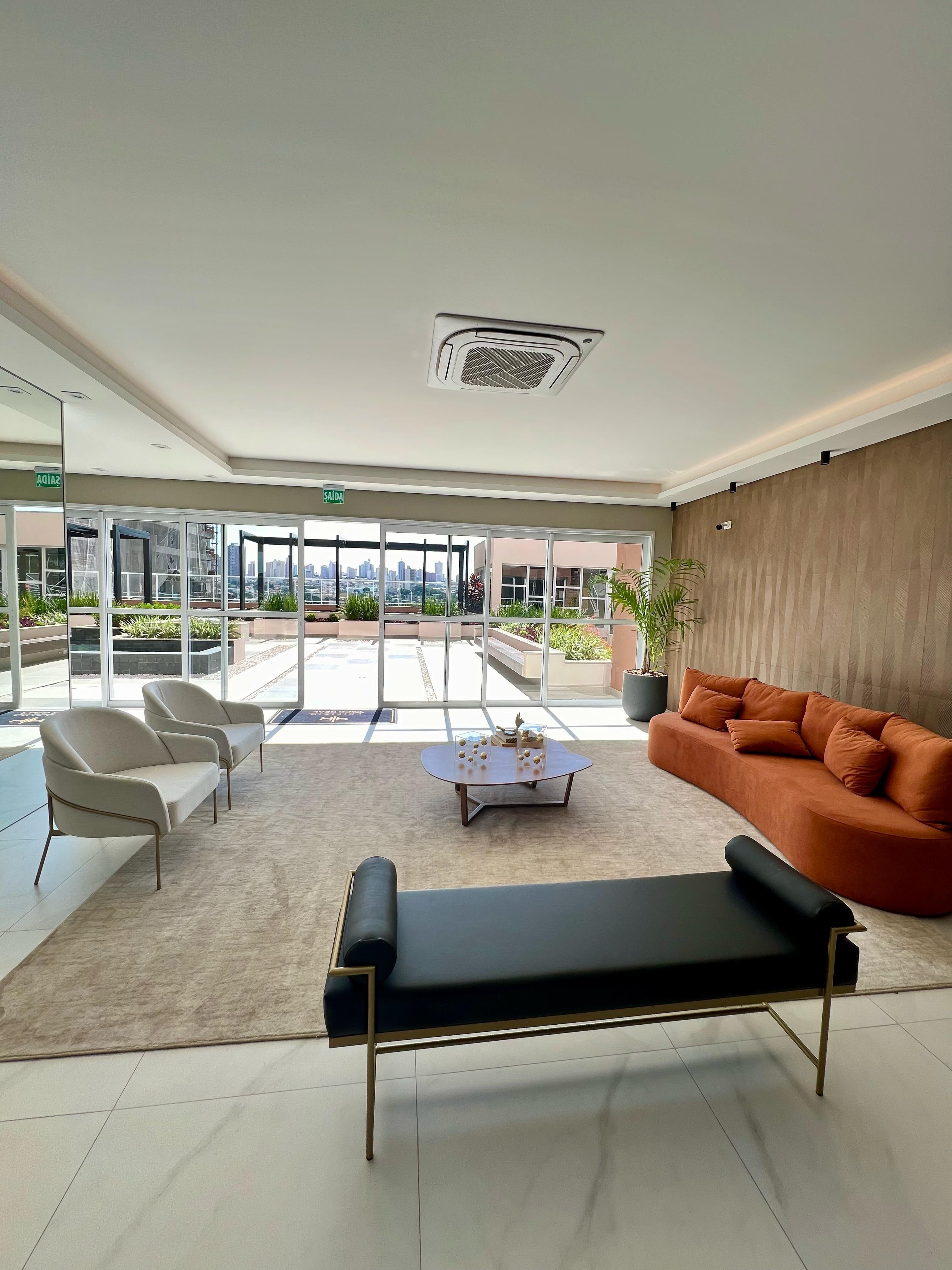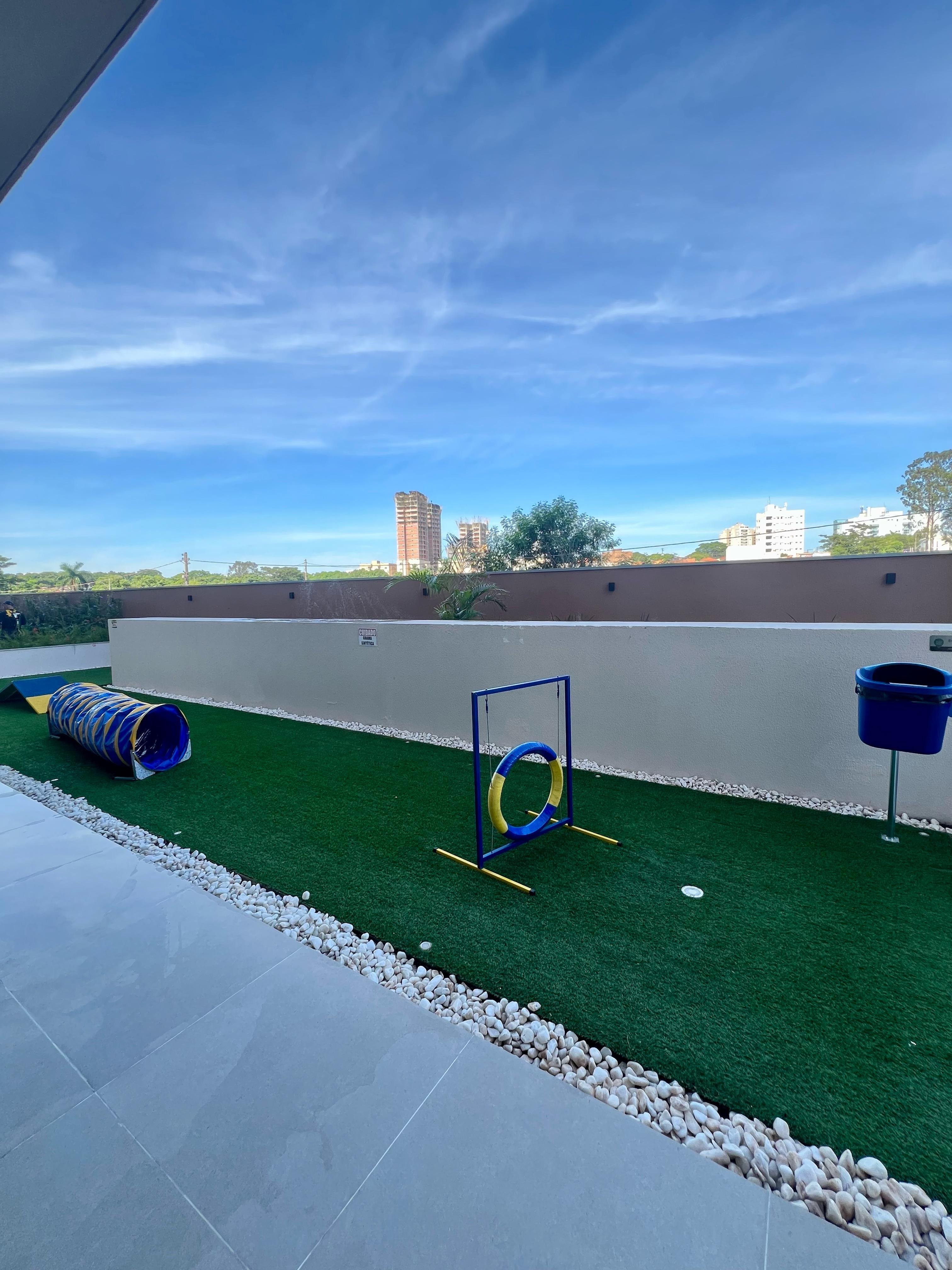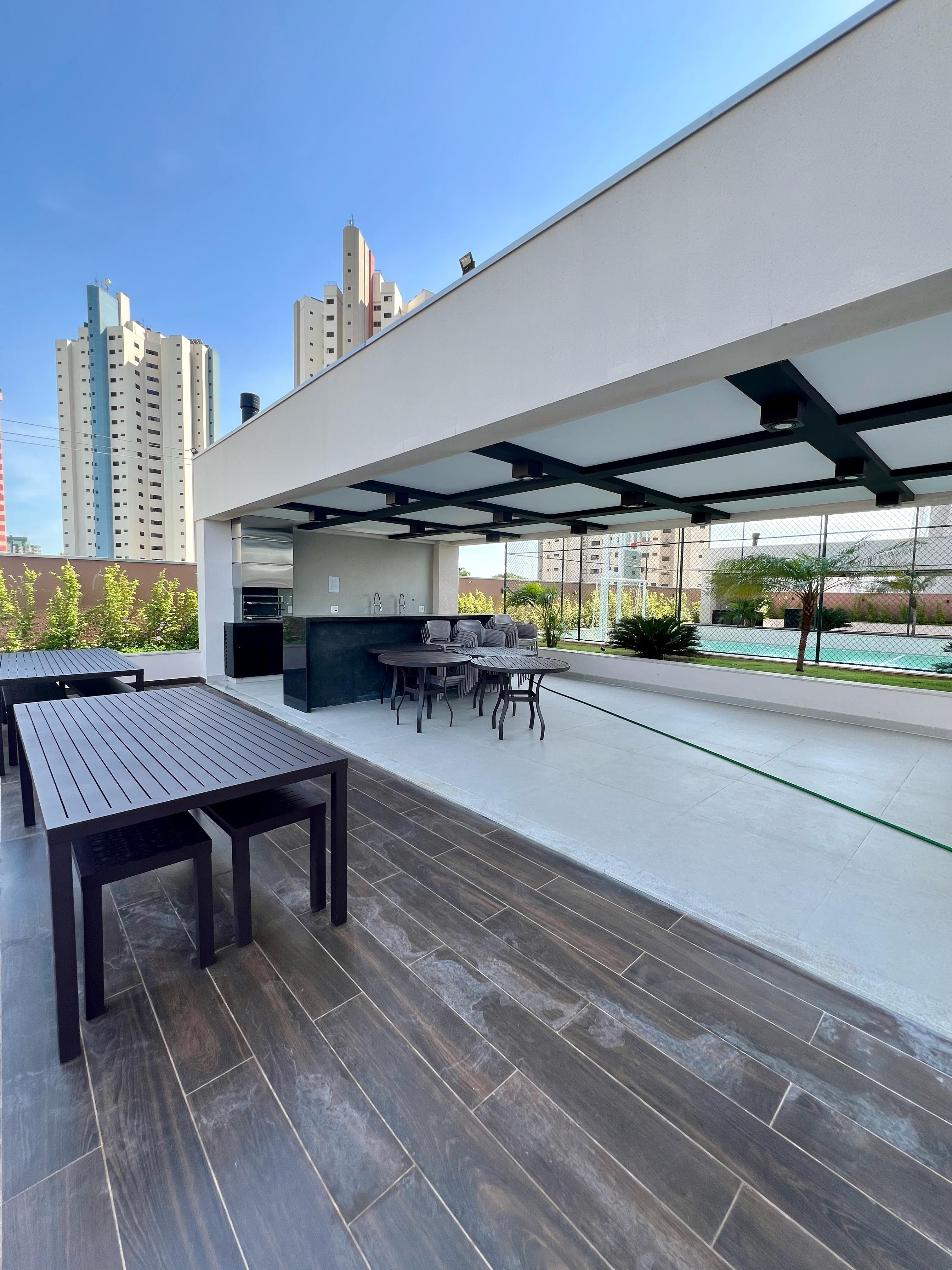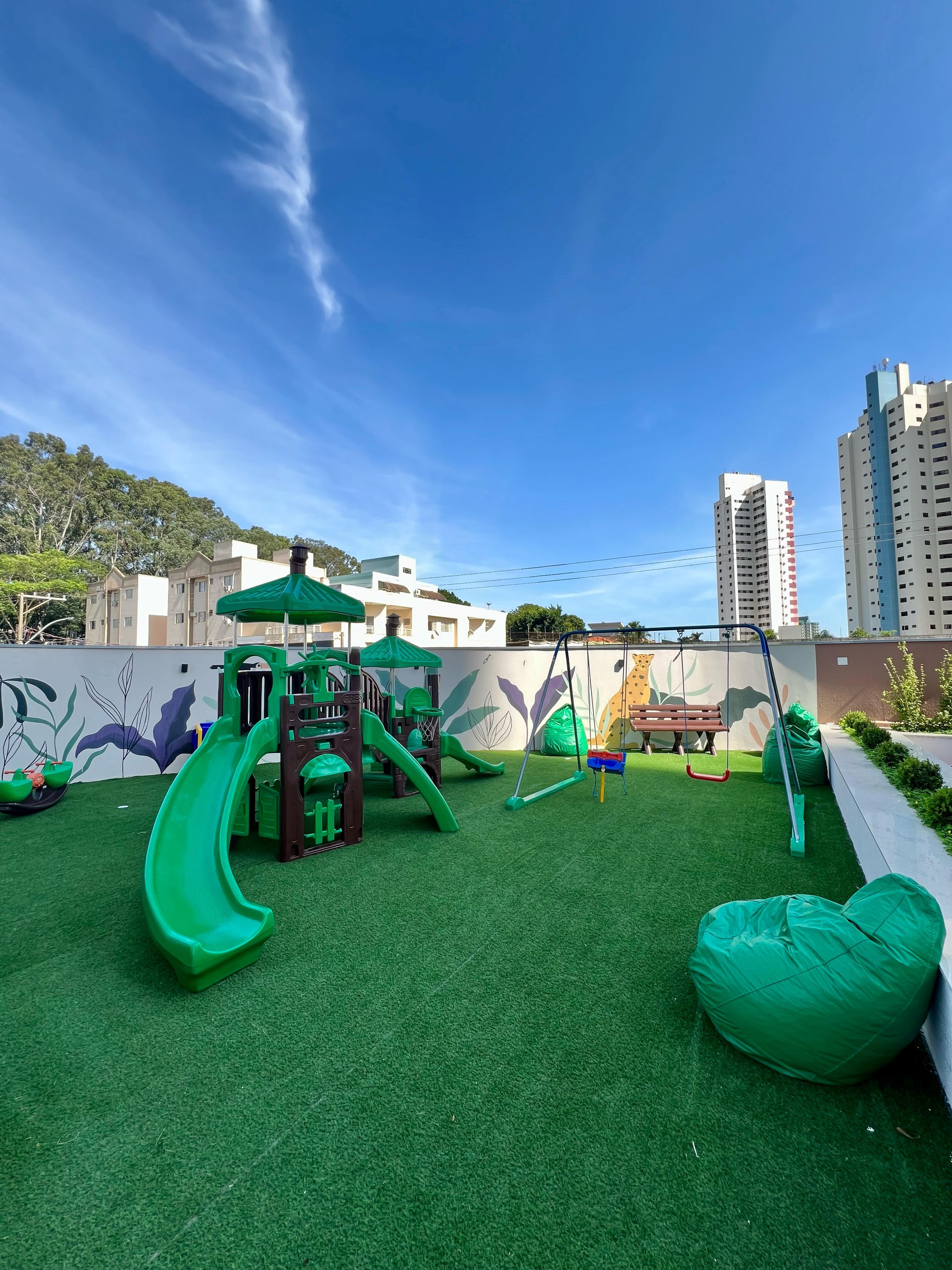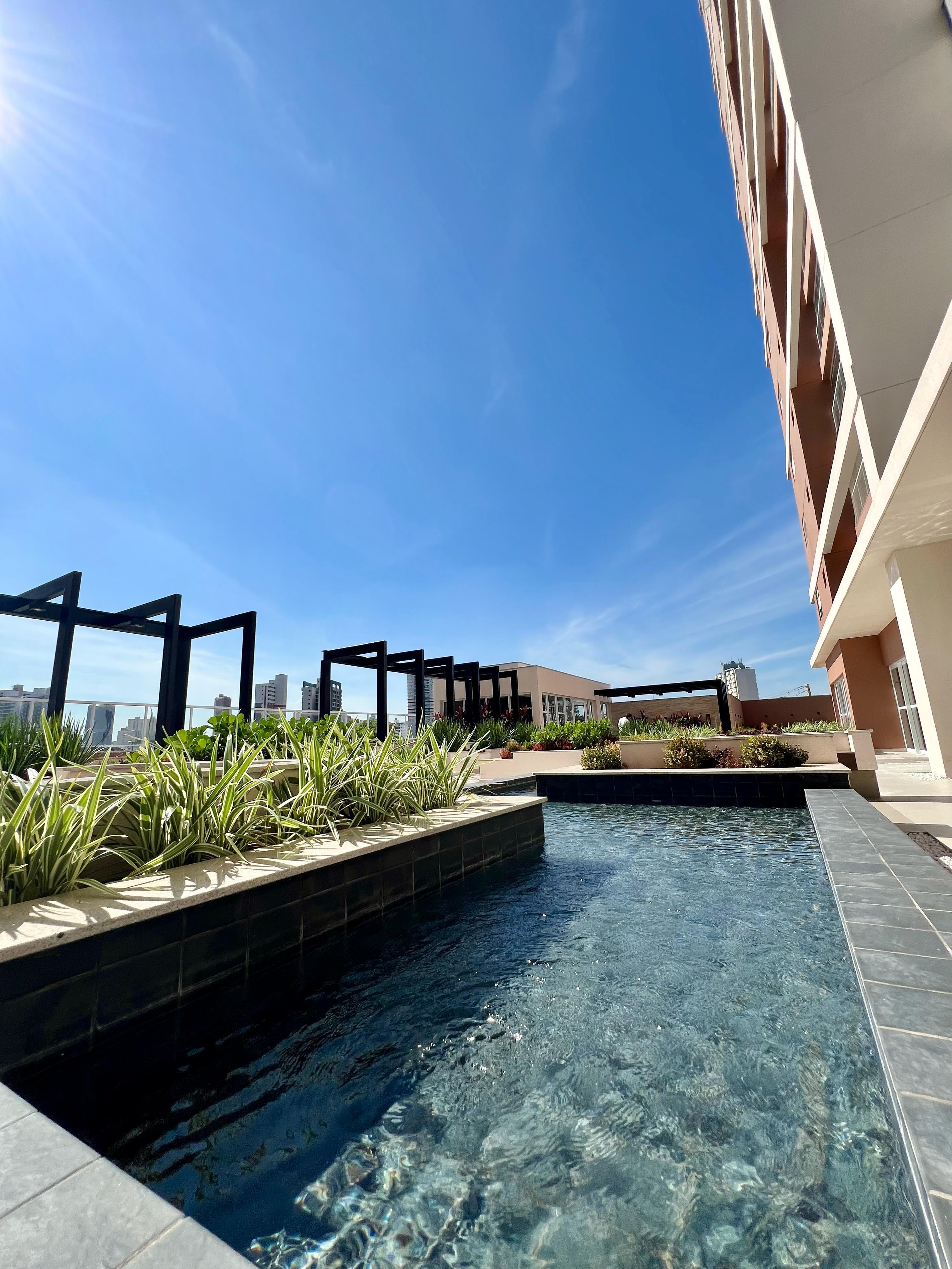 Bela área de lazer com: piscina de borda infinita, academia, salão de festas, playground e quadra poliesportiva.
