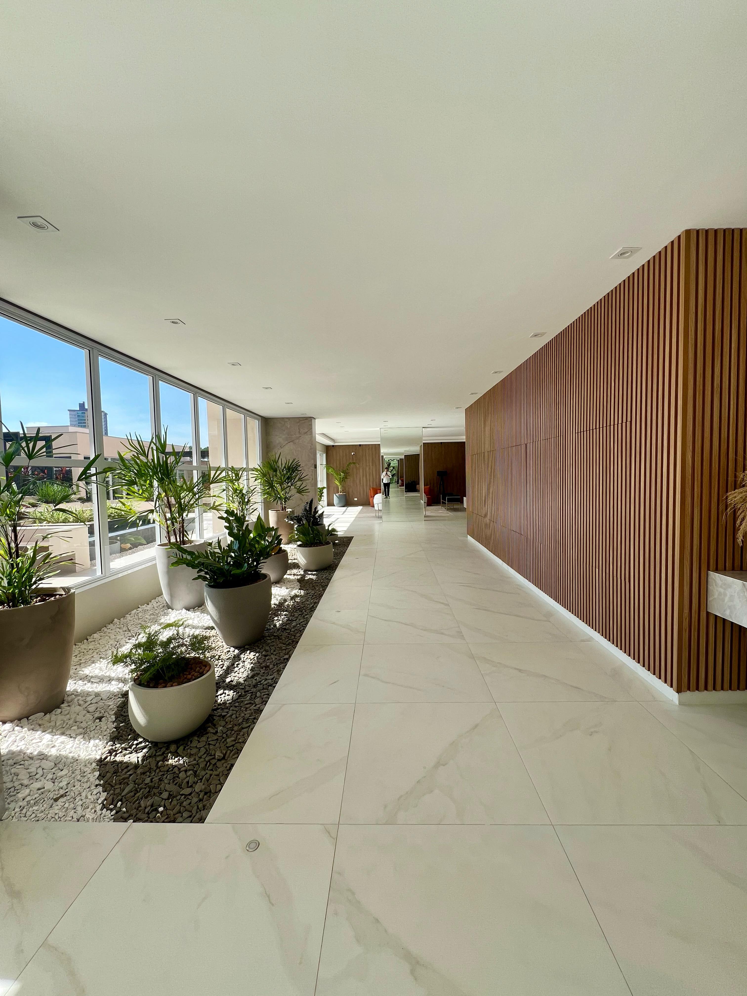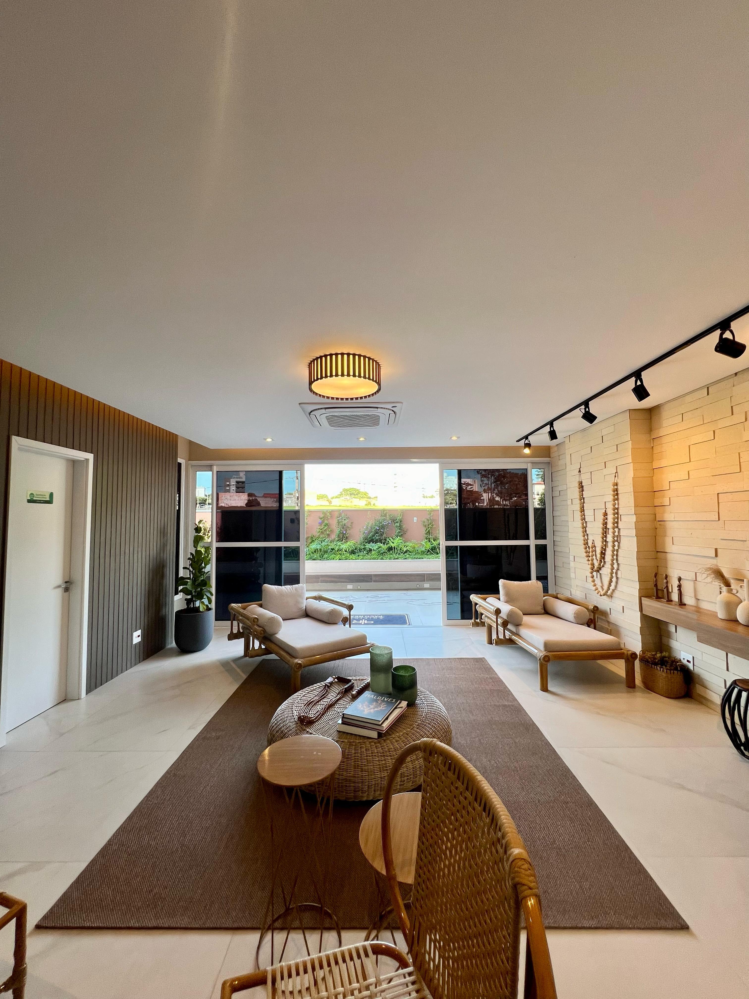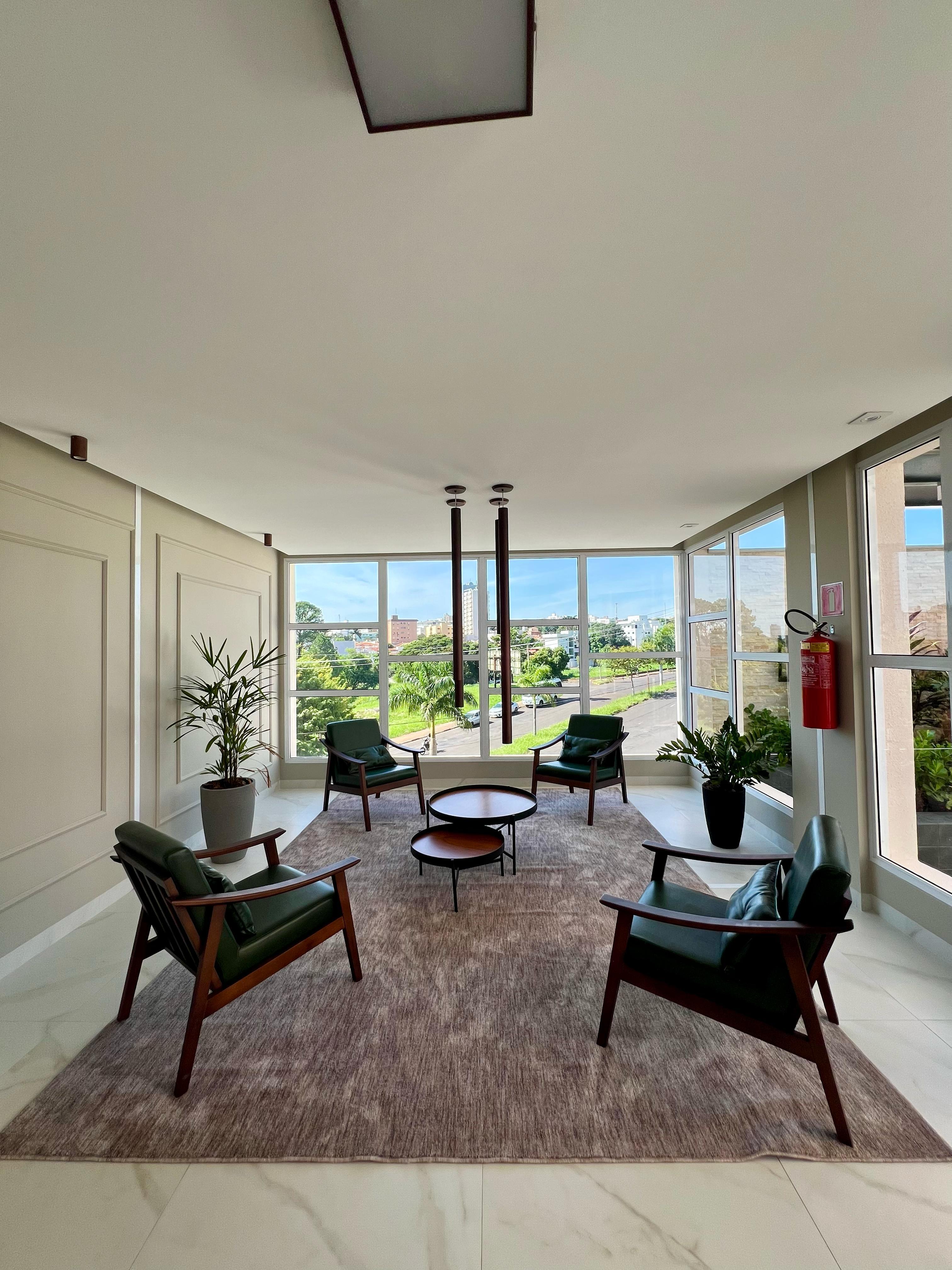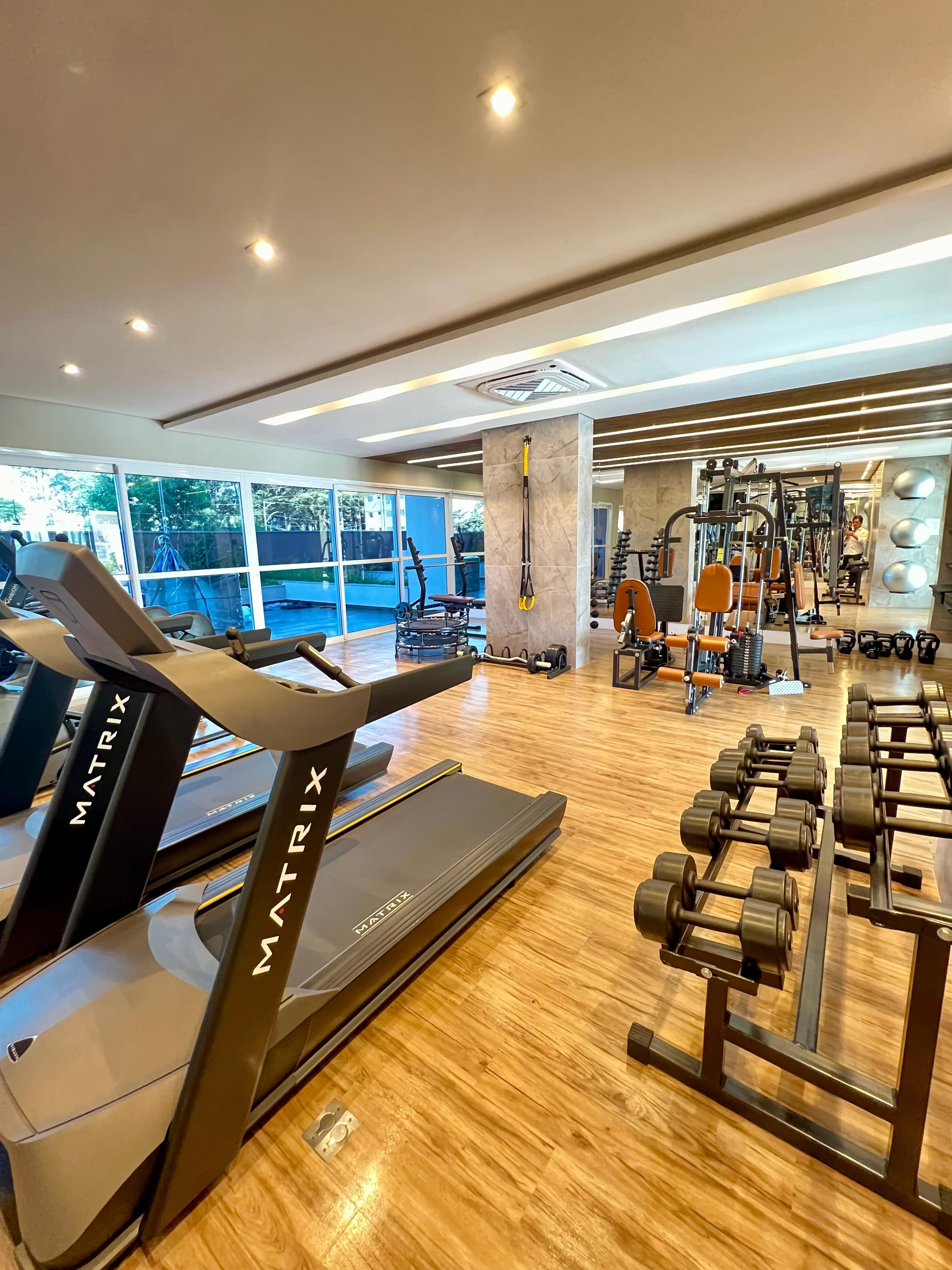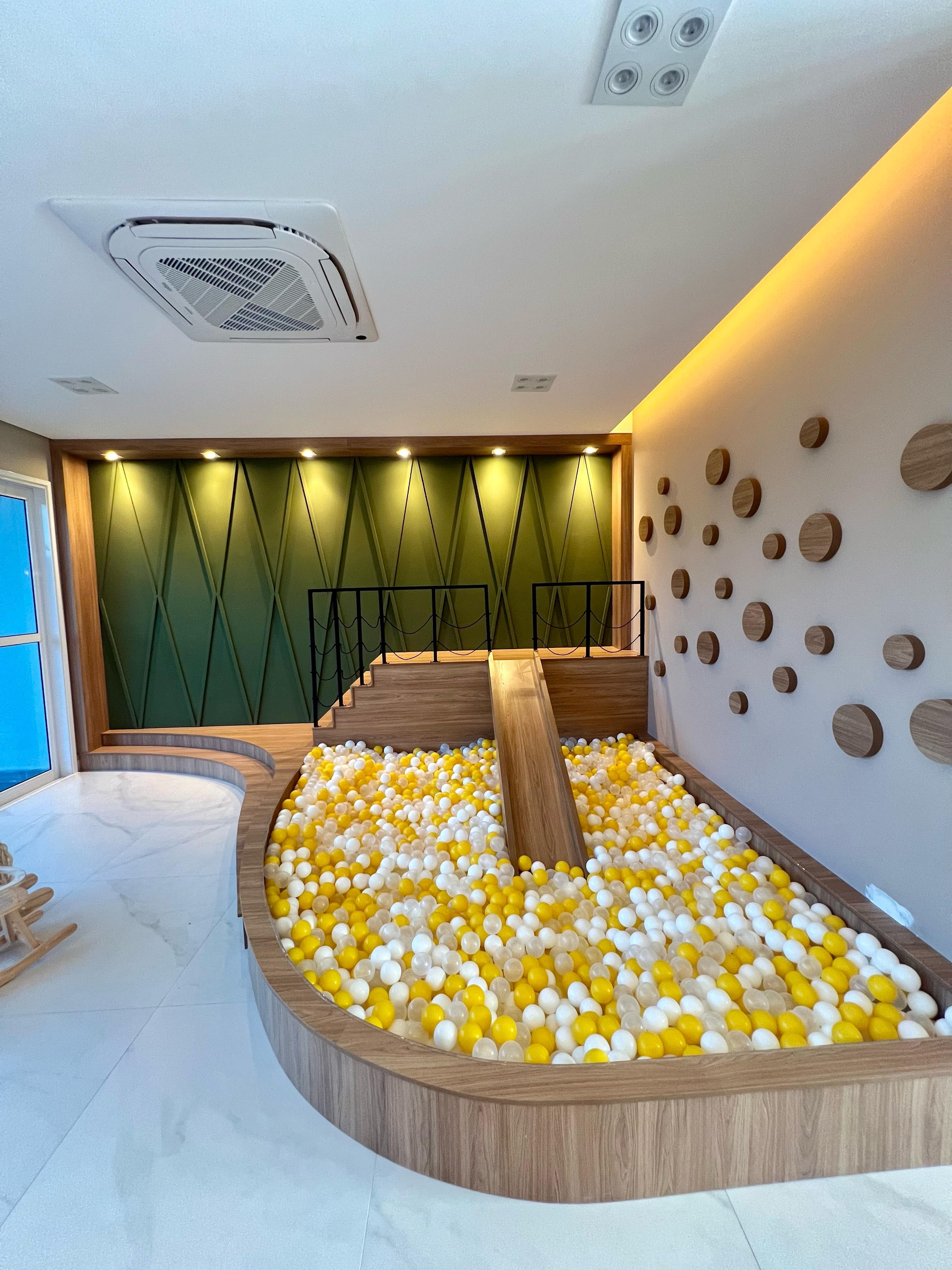Bela área de lazer com: piscina de borda infinita, academia, salão de festas, playground e quadra poliesportiva.