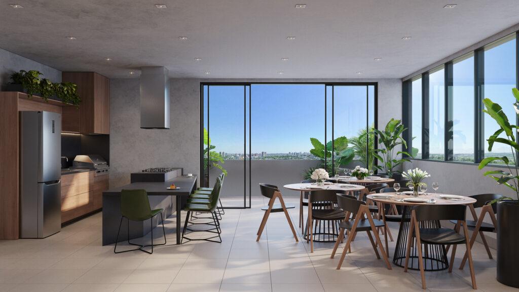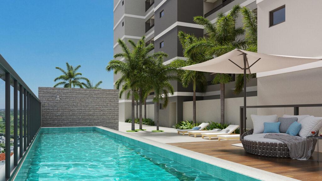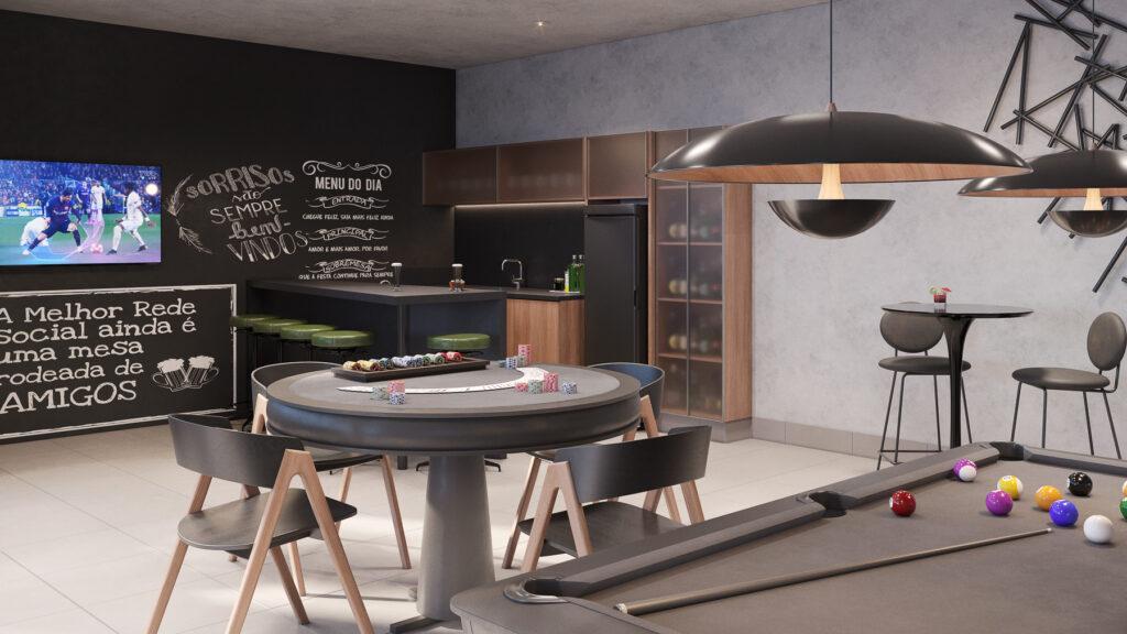 O condomínio oferece ampla área de lazer com piscina, espaço grill, rooftop com espaço fitness, pub, área gourmet, coworking, lavanderia e pet place.