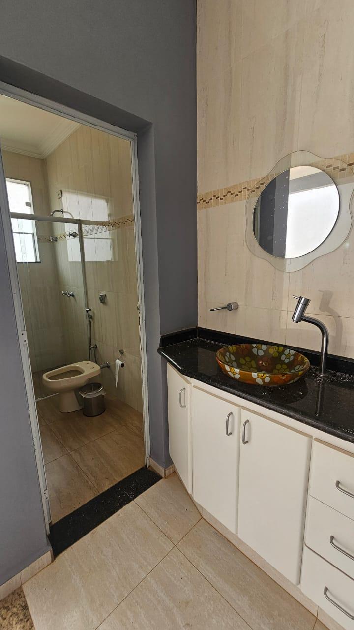 Excelente imóvel com localização privilegiada! Com portão eletrônico e cerca elétrica, belo jardim, 04 vagas de garagem, sendo 02 cobertas, sala de visita, sala de TV, ambas com ar condicionado, lavabo e jardim de inverno, a cozinha é planejada, garantindo praticidade e funcionalidade, a lavanderia espaçosa com 02 despensas, a área externa com uma ampla varanda com sala de jantar e banheiro, além de uma convidativa piscina com cascata. No andar superior possui 04 suítes sendo 01 master com closet e banheira de hidromassagem, e 02 com sacada, todas suítes com ar condicionado e ventilador.