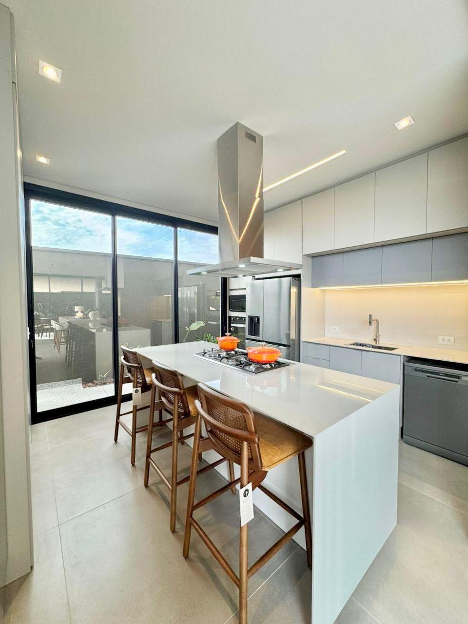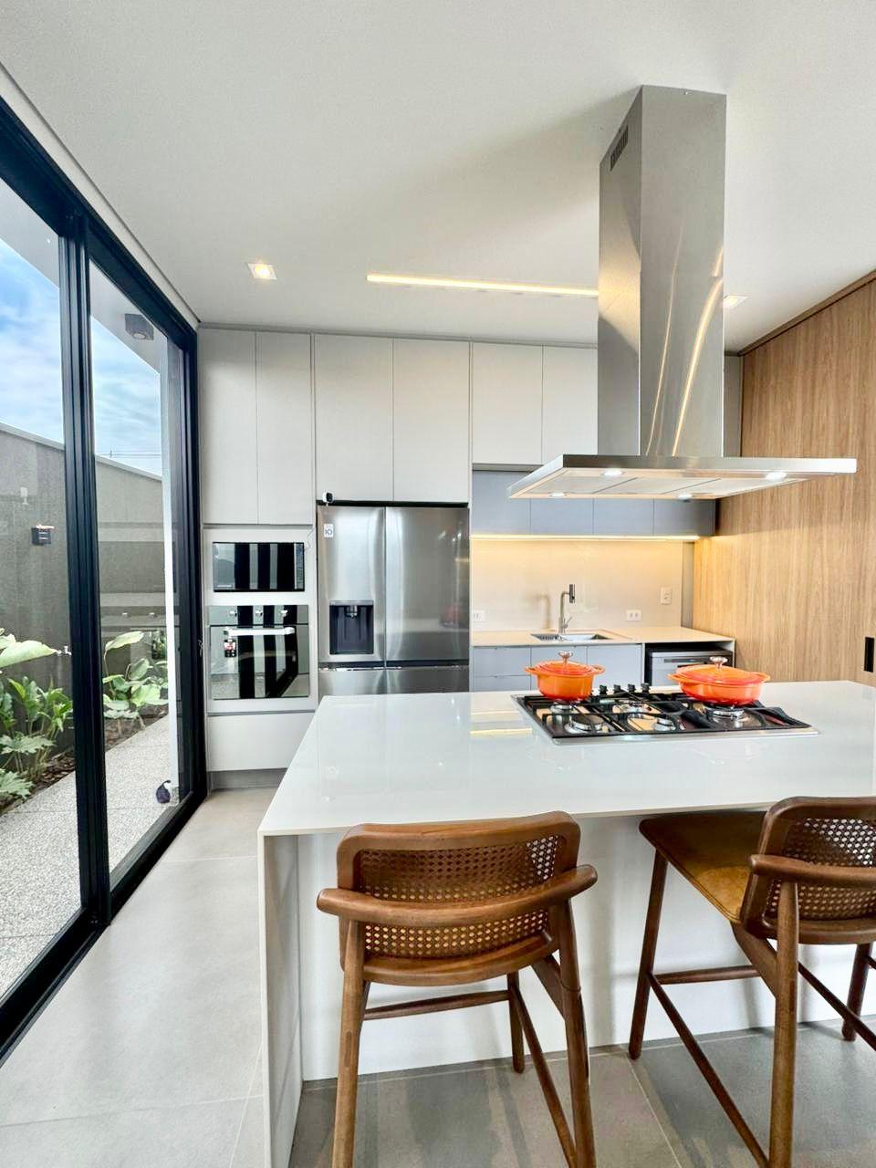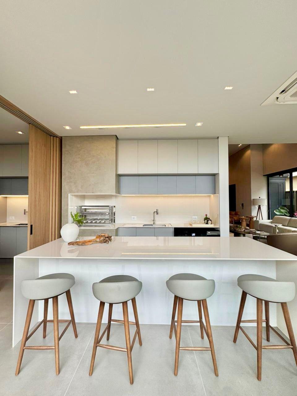 Fachada imponente que encanta; Sala de estar e jantar integrada; 4 suítes sendo 01 master com closet, todas com persianas automatizadas; Cozinha completa equipada com eletrodomésticos: forno elétrico, micro-ondas, geladeira side by side, fogão, coifa gourmet e lava-louças; Lavanderia equipada com Lavadora lava e seca de tombamento; Banheiro externo e lavabo; Escritório com móveis planejados; Área gourmet climatizada com fechamento em esquadrias de alumínio e vidro, equipada com eletrodomésticos como adega e cervejeira; Piscina aquecida, com hidromassagem, paisagismo completo.