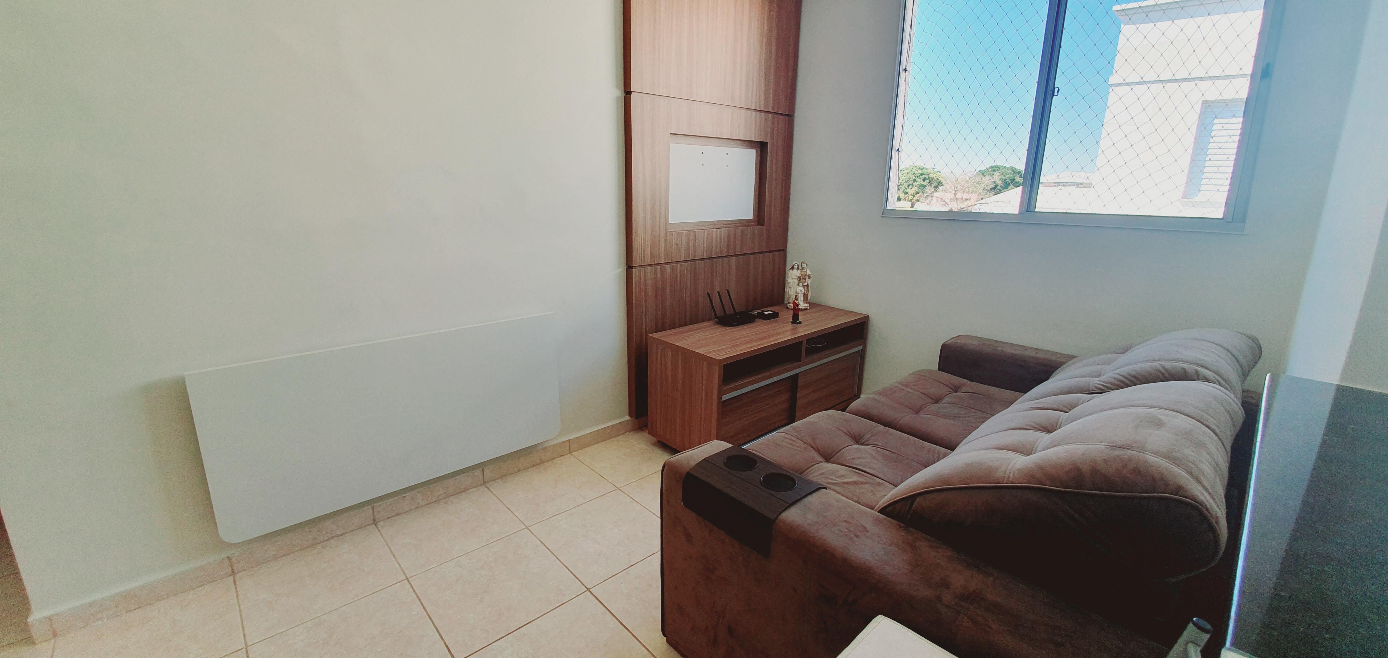 Imóvel contendo: 1 vaga de garagem coberta; sala com painel e ventilador de teto; cozinha planejada, balcão de granito; 2 dormitórios c/ armario 1c/ ar condicionado; banheiro social com gabinete e blindex;