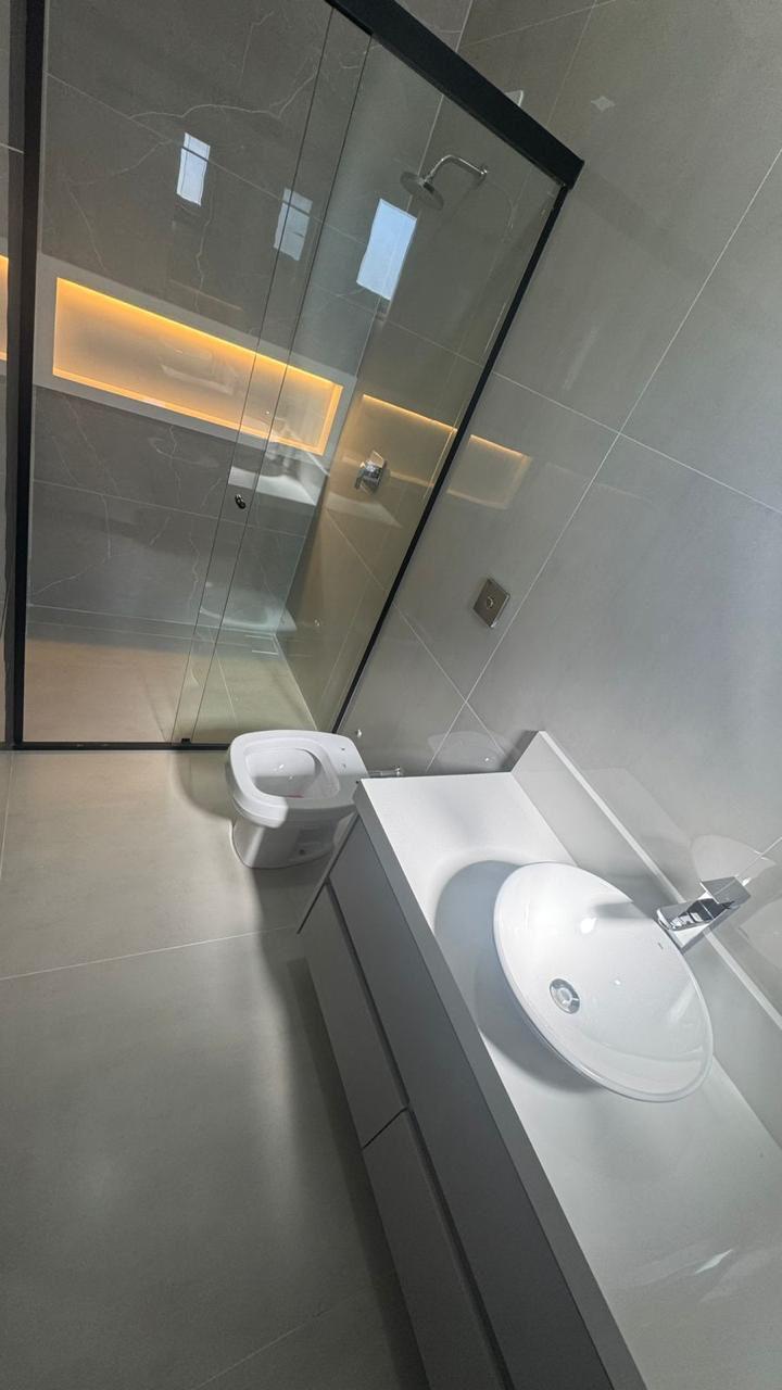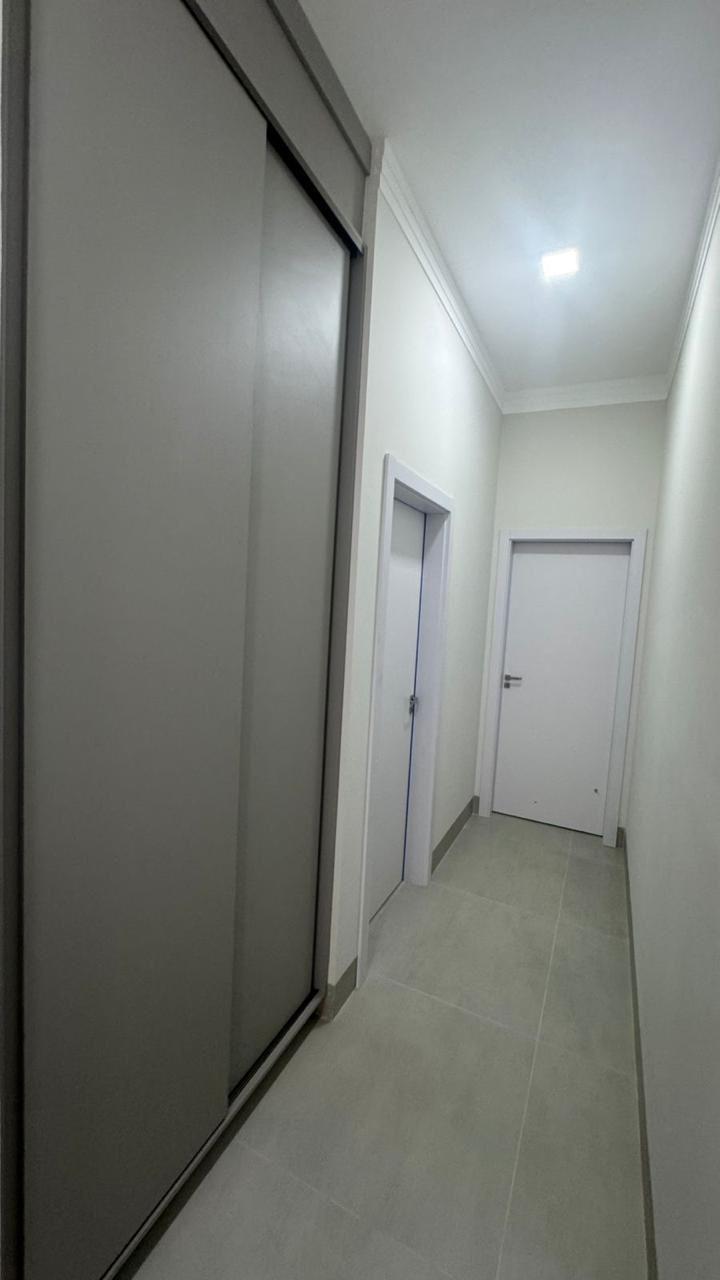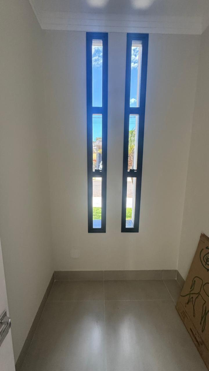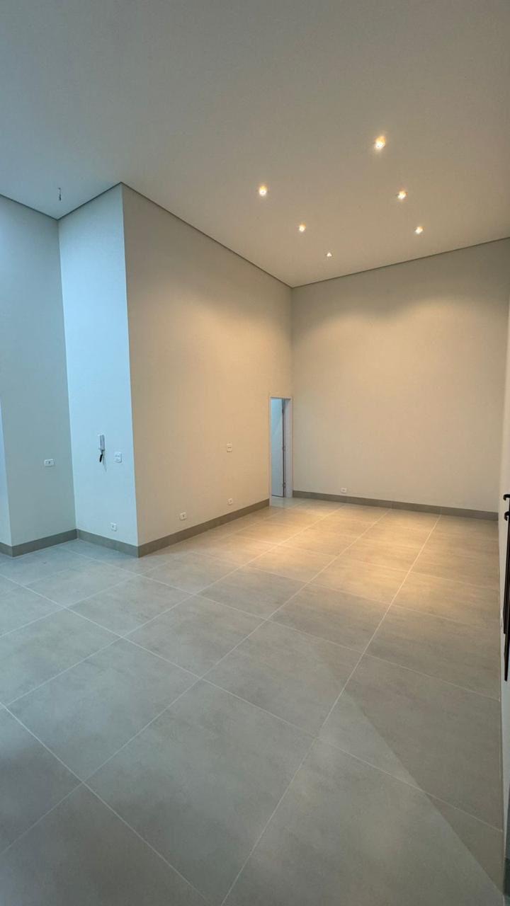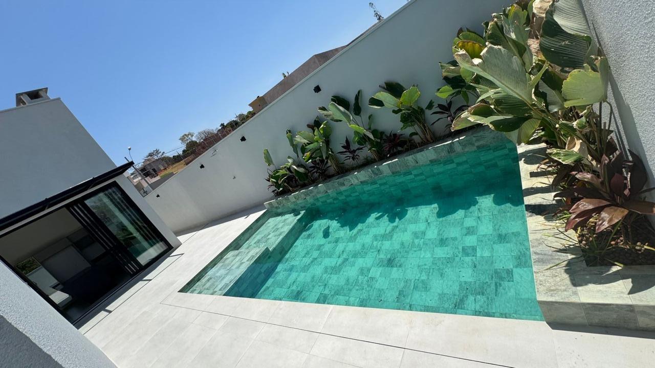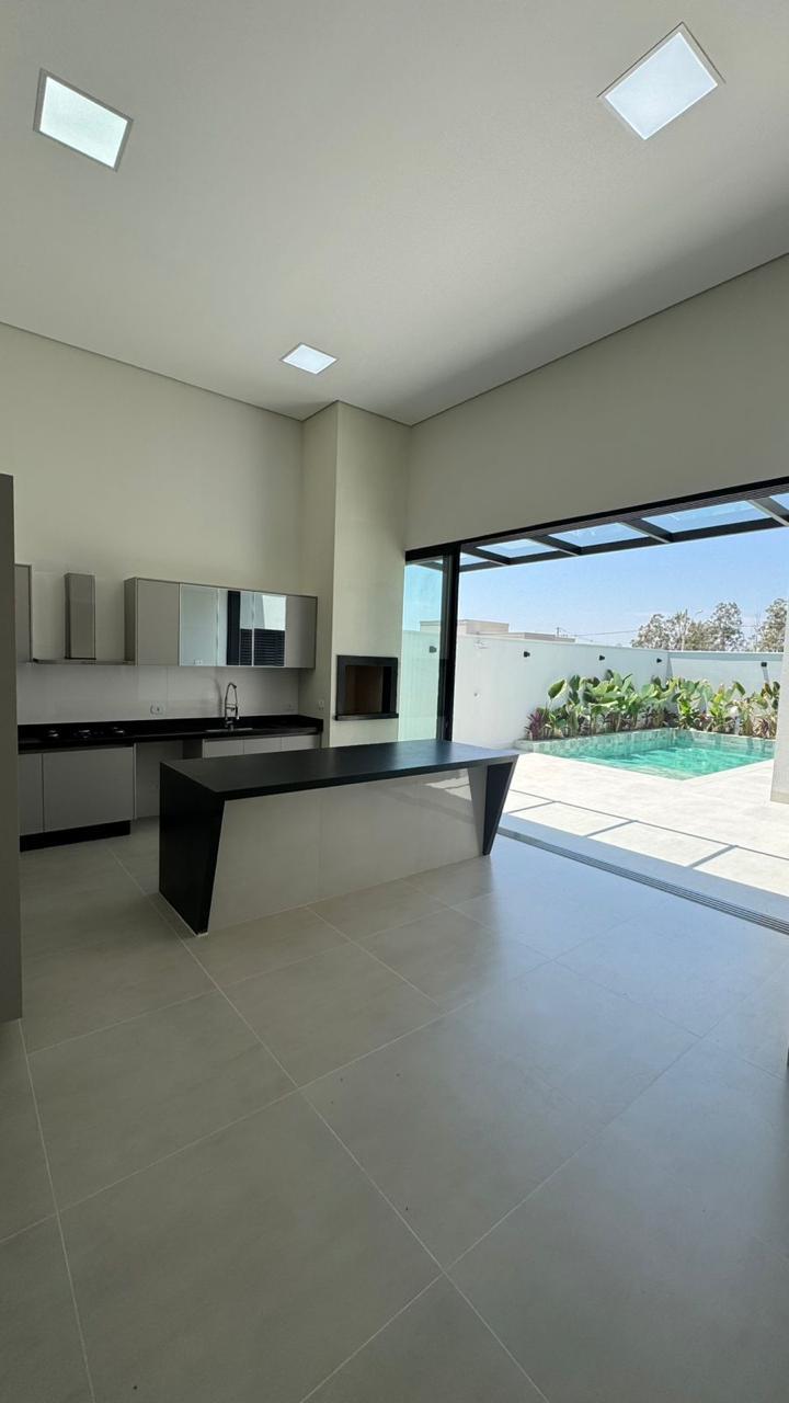 Casa Térrea no Condomínio Portinari II em Presidente Prudente/SP, com 3 suítes (sendo 1 master com closet e banheiro com cuba dupla e chuveiro de teto), sala de TV e jantar com pé-direito alto, escritório, lavabo, despensa, cozinha gourmet com móveis planejados, cristaleira e balcão em mármore preto São Gabriel. Possui lavanderia planejada, energia fotovoltaica, piscina aquecida com prainha, hidro e cascata, além de ótimo espaço de quintal. Garagem coberta para 2 veículos, acabamento de excelência, isolamento térmico e acústico, iluminação em LED e fachada moderna.