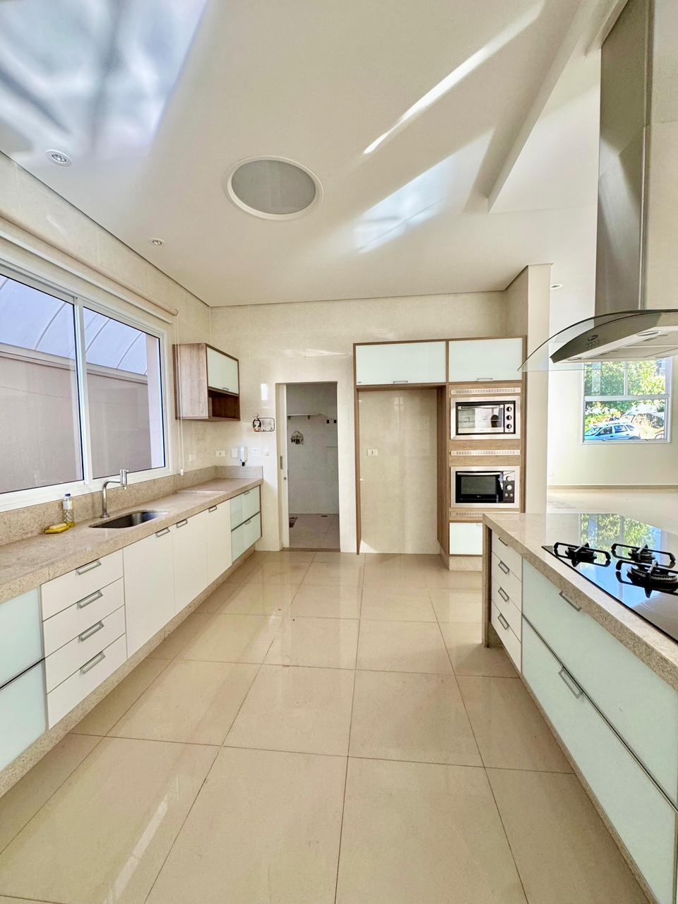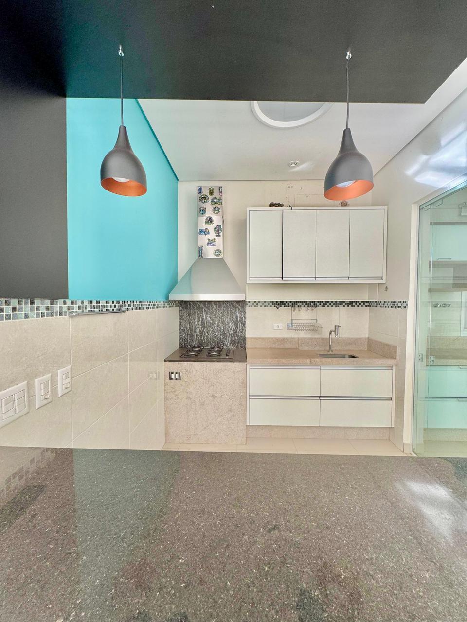 Espaço gourmet integrado com cooktop, pia, telão e projetor