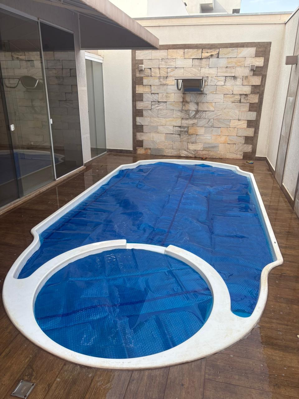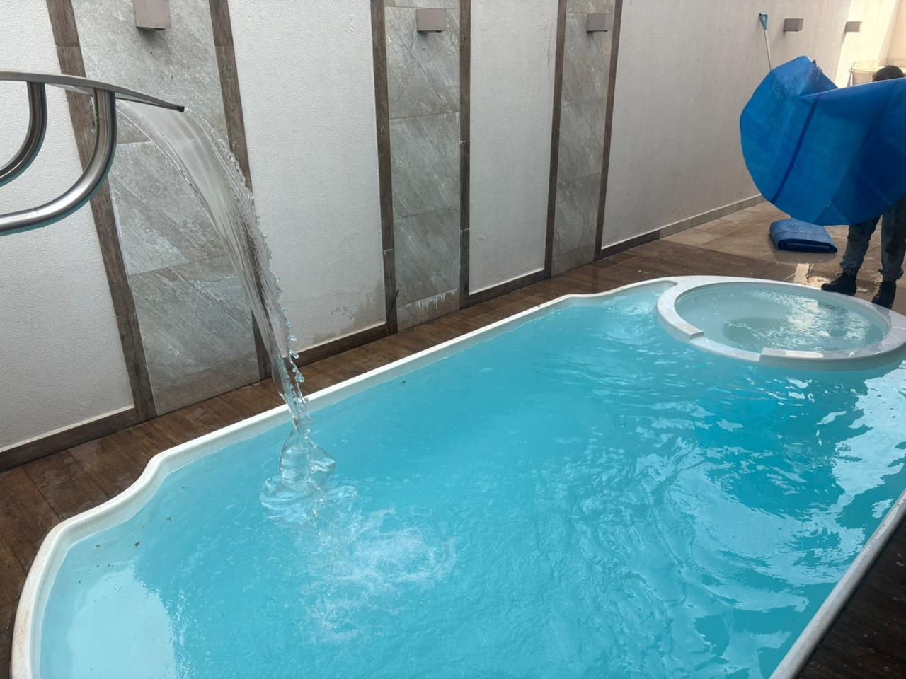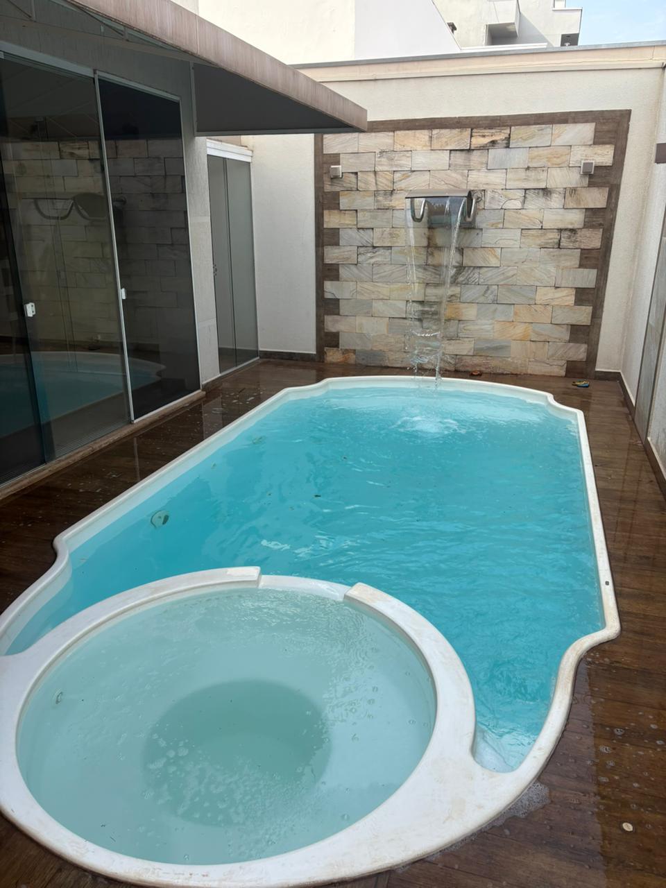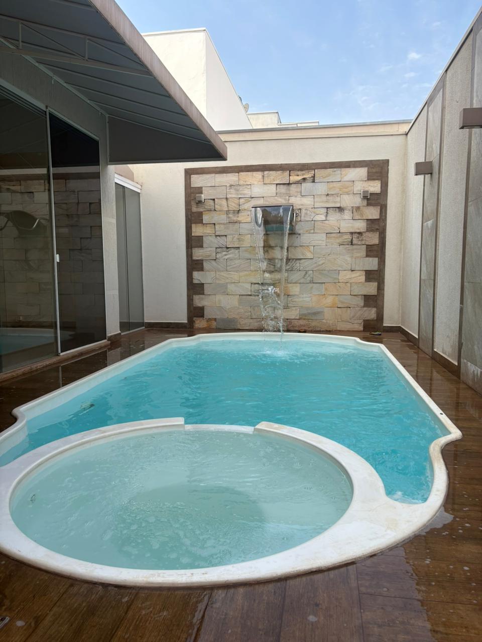 Piscina com cascata e hidromassagem